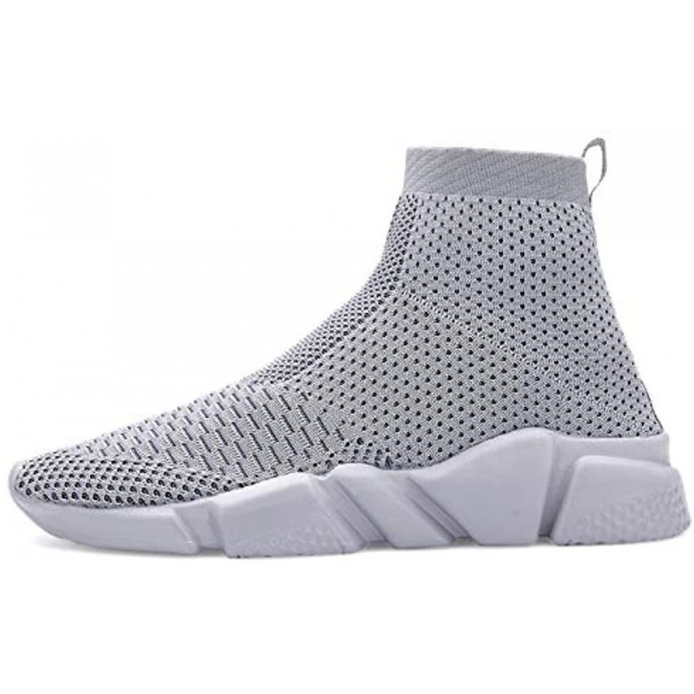 Slip-On Sneakers Breathable Lightweight Athletic Running Shoes High Top All Gray