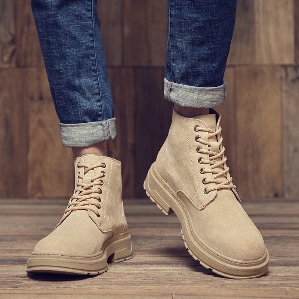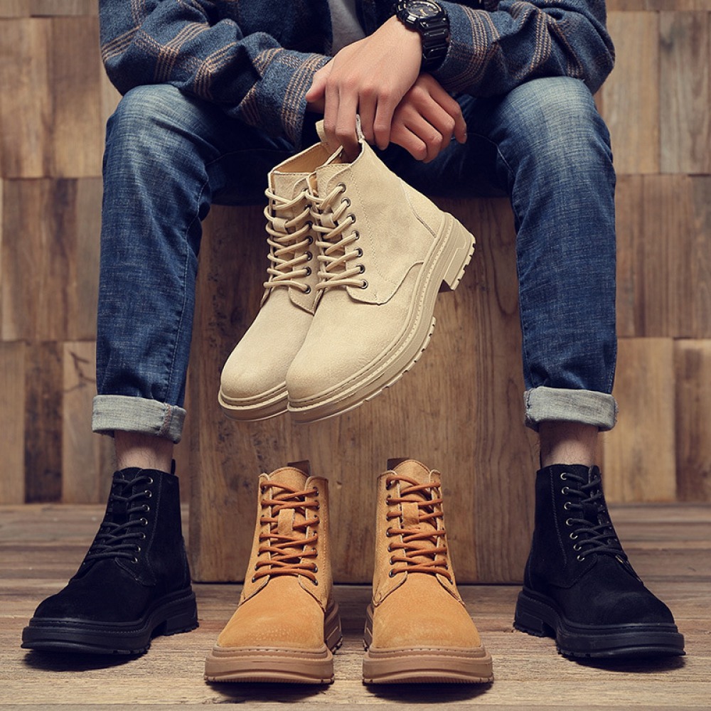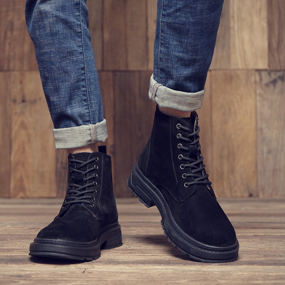 Men's Leather Martin Boots Winter Casual British Tooling Shoes