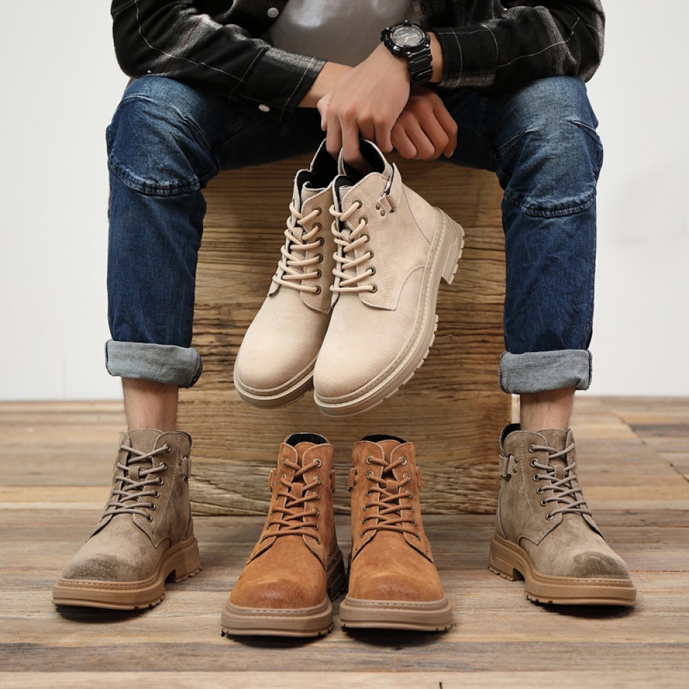 Men's Leather Martin Boots Winter Casual British Tooling Shoes