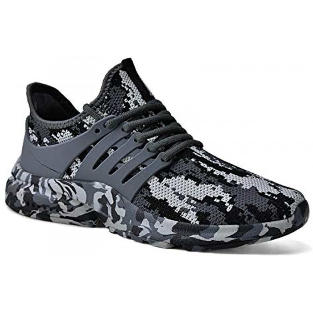 Men's Non Slip Gym Sneakers Lightweight Breathable Athletic Running Walking Tennis Shoes Camouflage Grey