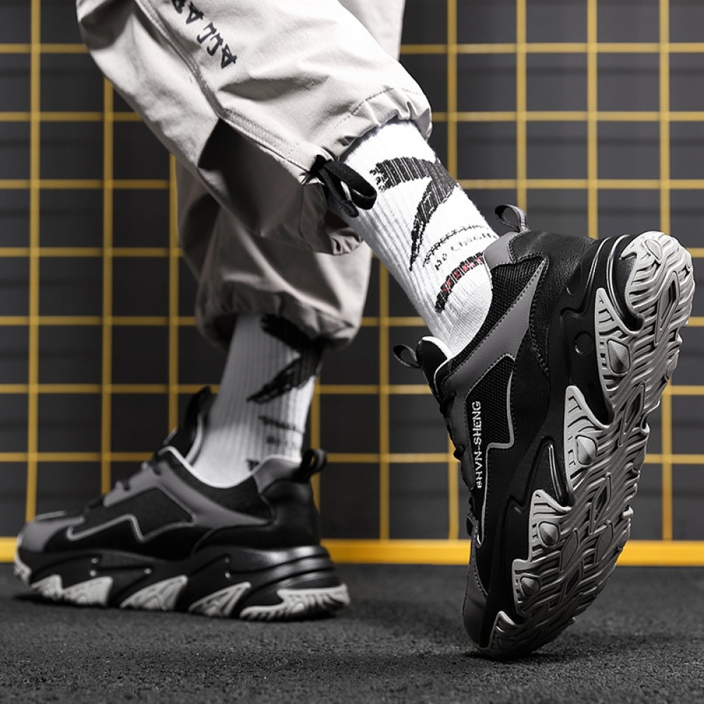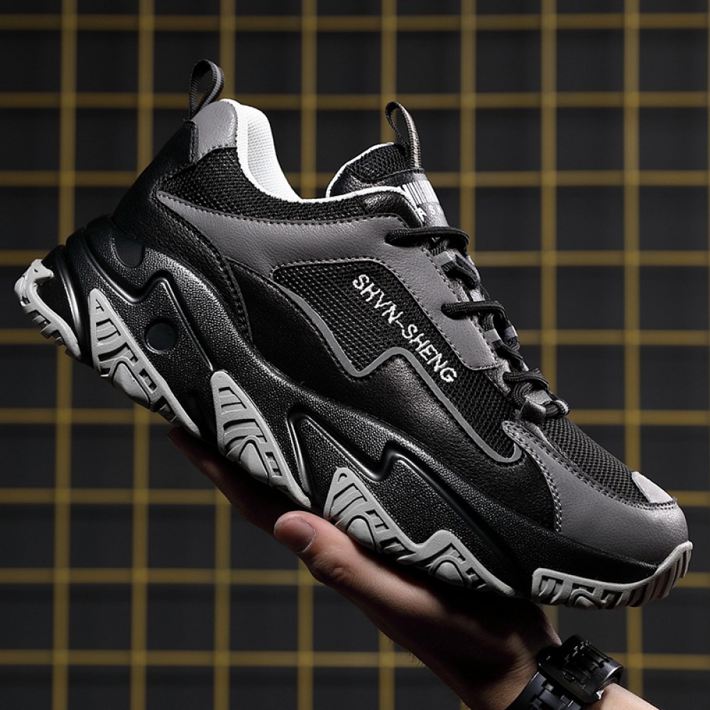 Men's Round Head Shoes Front Lace-Up Mid-Heel Casual Sports Single Shoes