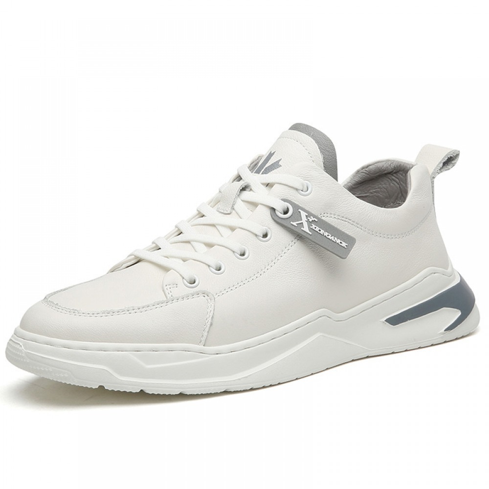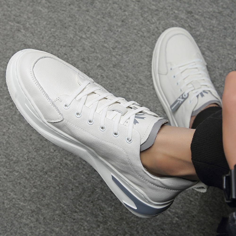 Autumn New White Men's Casual Thick-Soled Trend Sports Leather Shoes