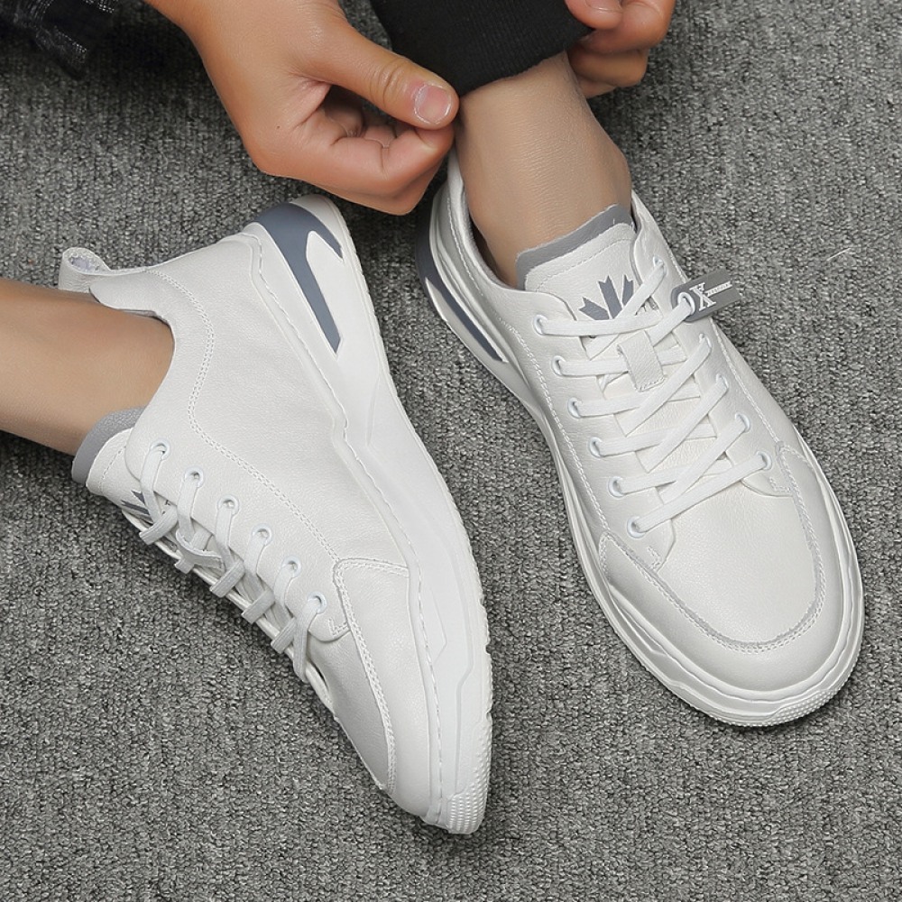 Men's Leather White Sneakers New Autumn Trend Breathable Casual Sports Shoes