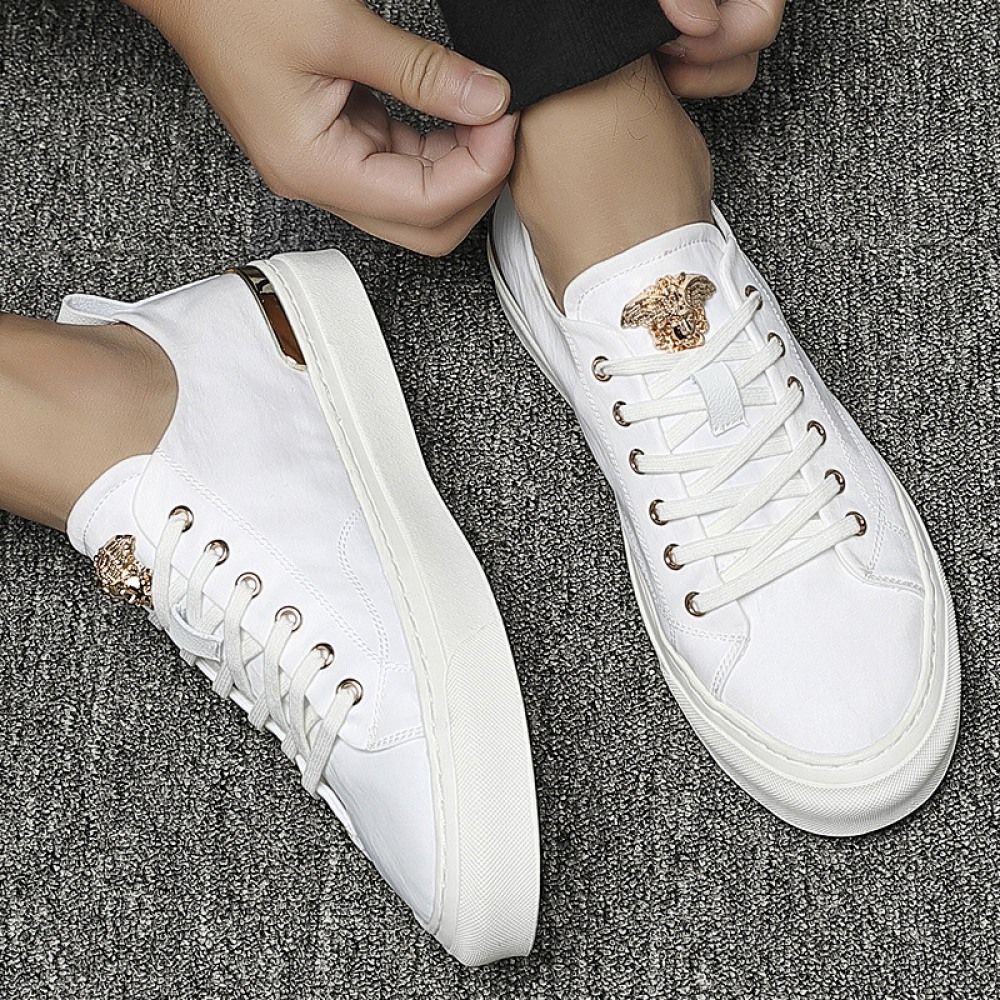 Men's Leather White Sneakers New Autumn Trend Breathable Casual Sports Shoes